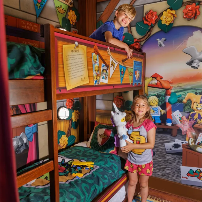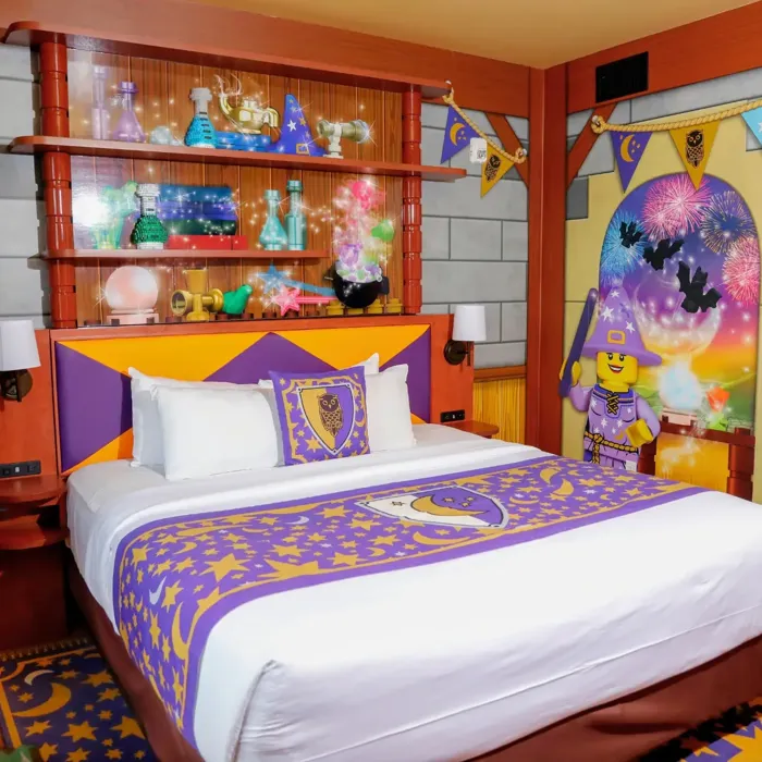 The LEGOLAND® Castle Hotel offers multiple room types across three themes: Knights & Dragons, Magic Wizard, and Royal Princess.