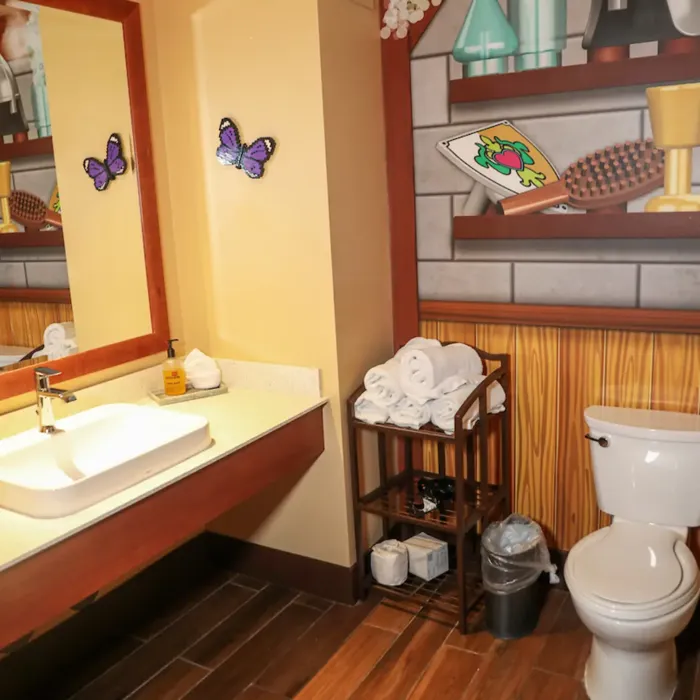 - Kids’ own sleeping area with 1 twin size bunk bed, 1 twin-size pull-out trundle bed, LEGO building area, and TV