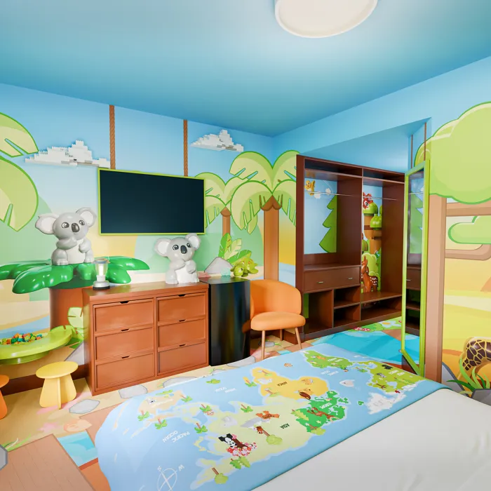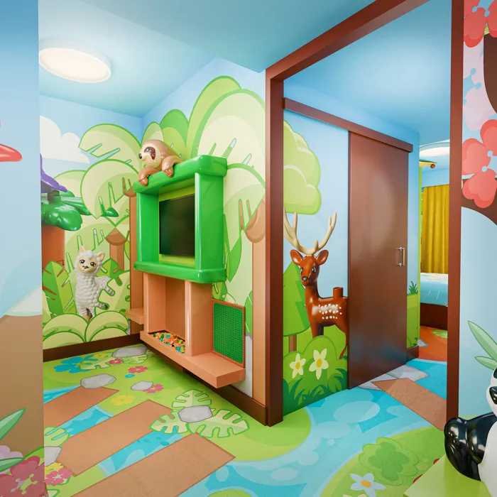 - Larger bathroom and kids’ room play area (compared to Family Suites)