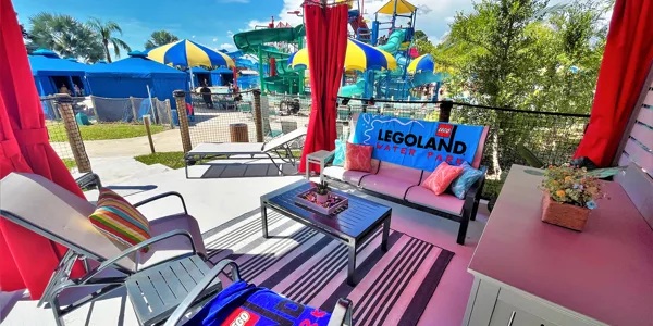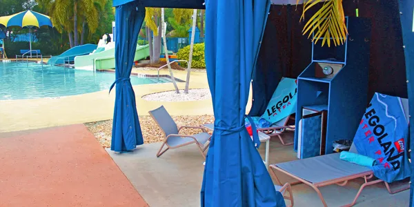 Deluxe cabana. Best access to the Twin Chasers plus convenient access to the Joker Soaker, LEGO® Wave Pool, and changing areas.