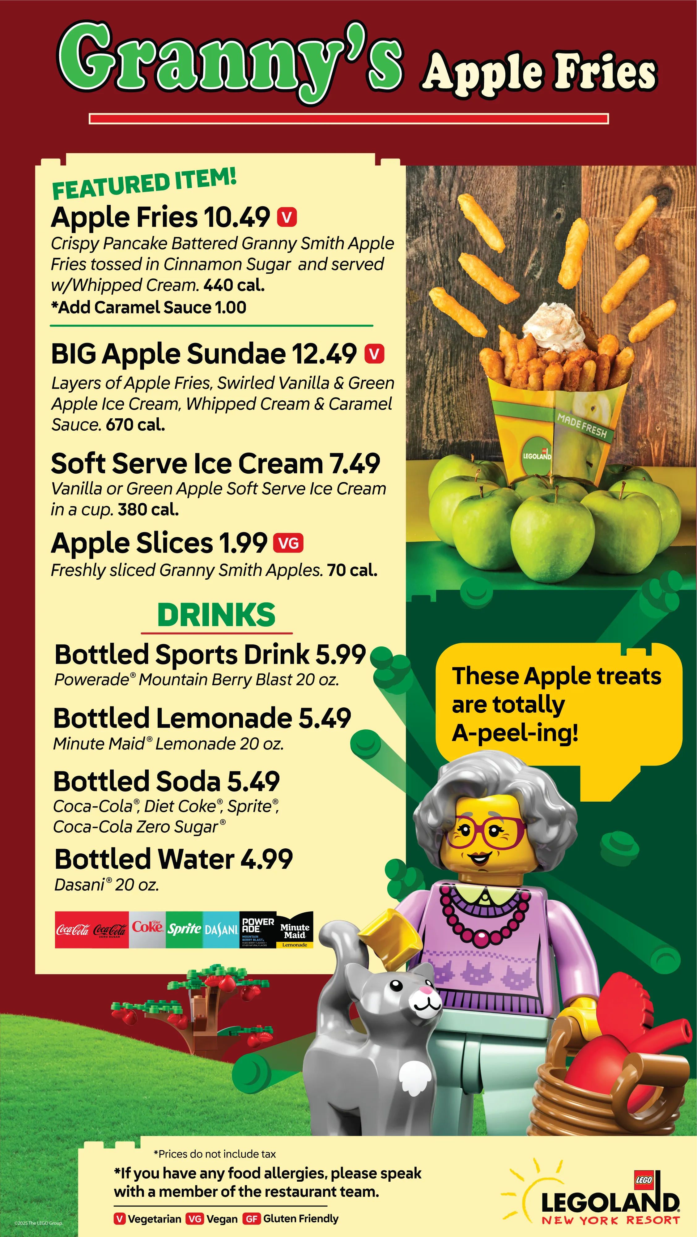 Experience a LEGOLAND® original! Crisp seasonal New York apples dusted with cinnamon and sugar, served with a vanilla cream dipping sauce. There is no wrong way to eat them! 📍 Theme Park, LEGO City